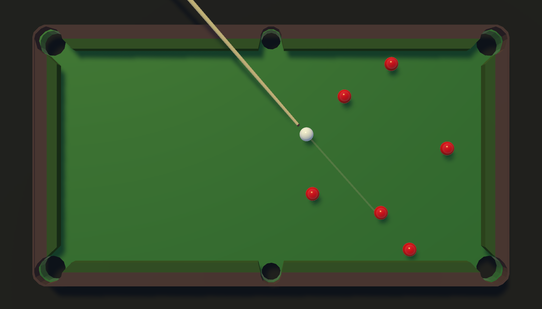 The cue appears only when all balls are fully at rest and hides immediately after a shot to keep gameplay clean and readable.